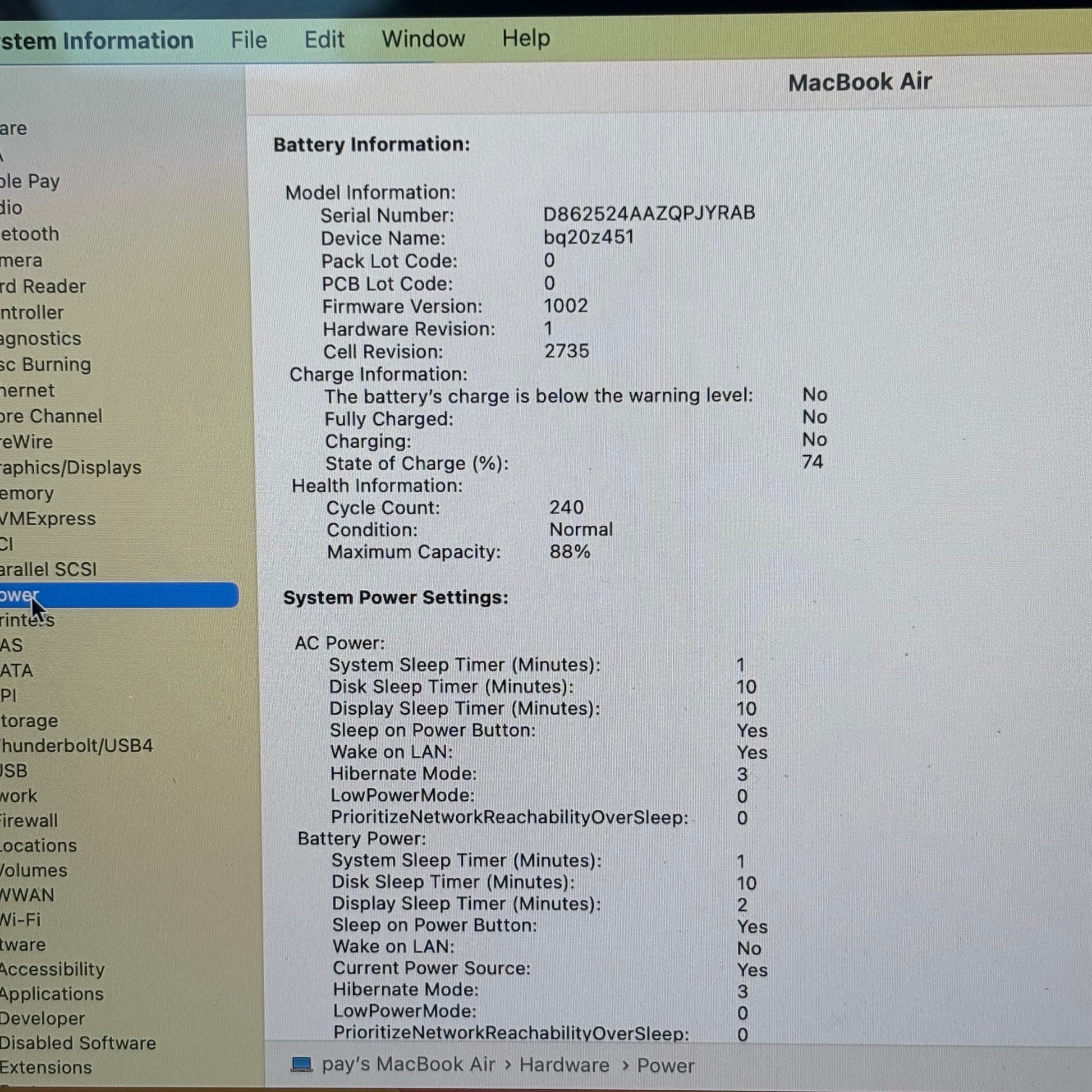 | Model | MacBook Air |