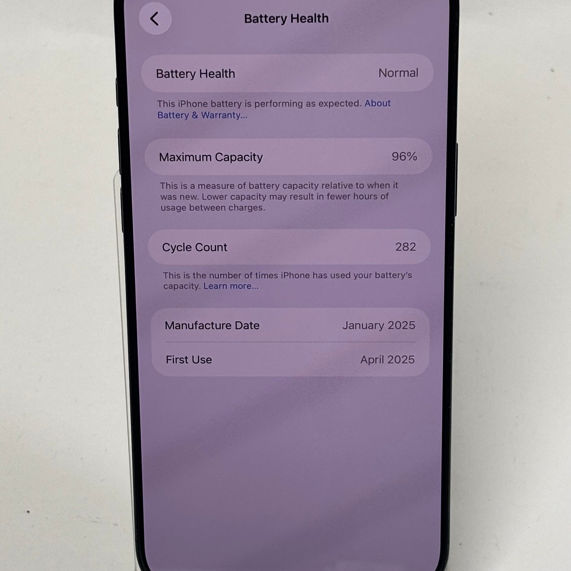 | Battery Health | 96% |