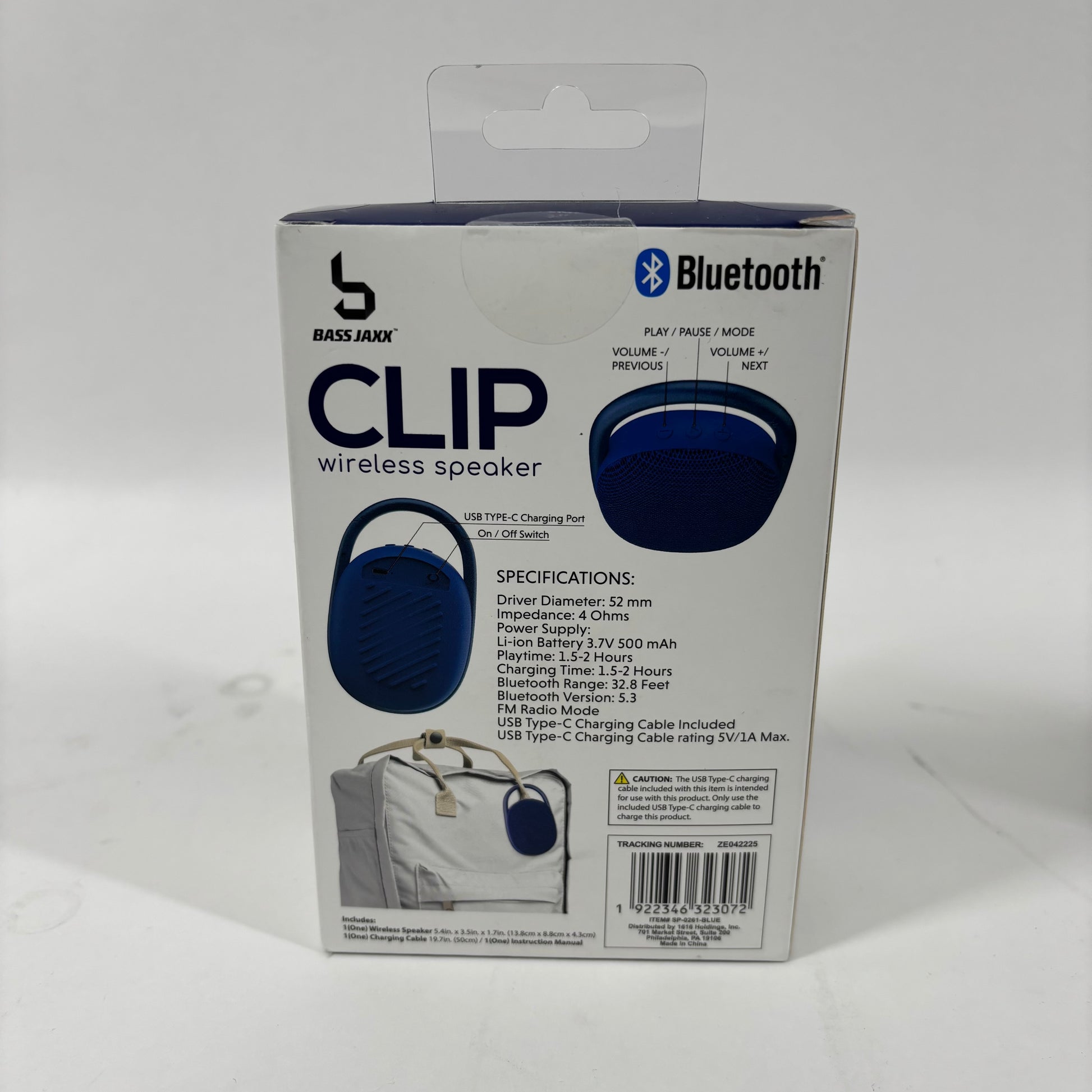 New Bass Jaxx Clip Bluetooth Speaker Blue SP-0261-BLUE