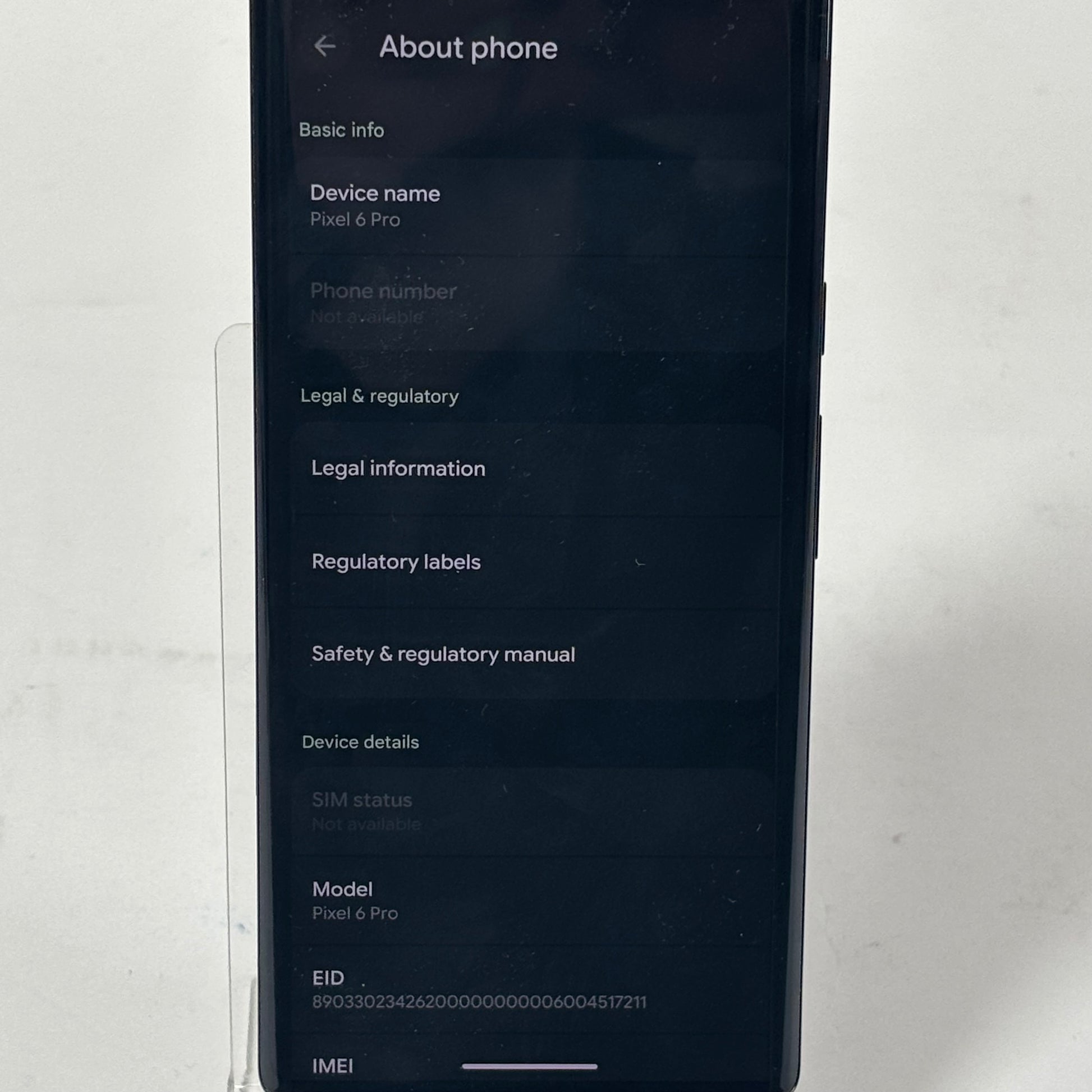 | Model | Pixel 6 Pro |